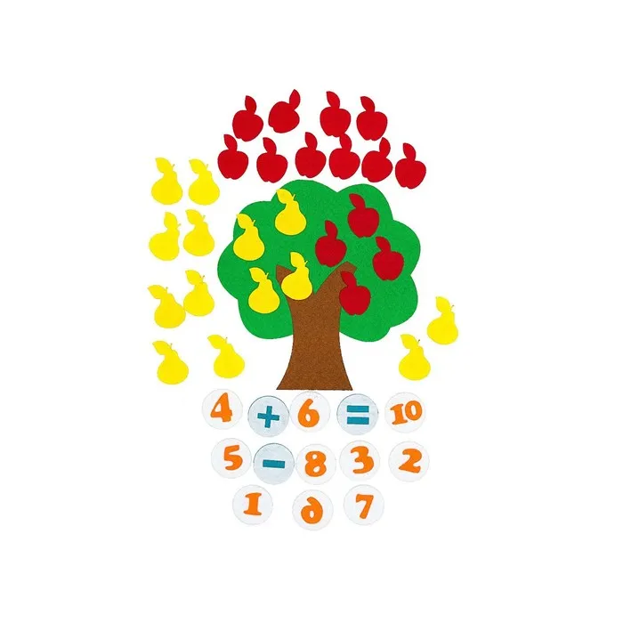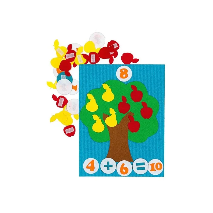 - Фигурки на липучках – 41 шт. (яблоки, груши, числа, счетный материал)