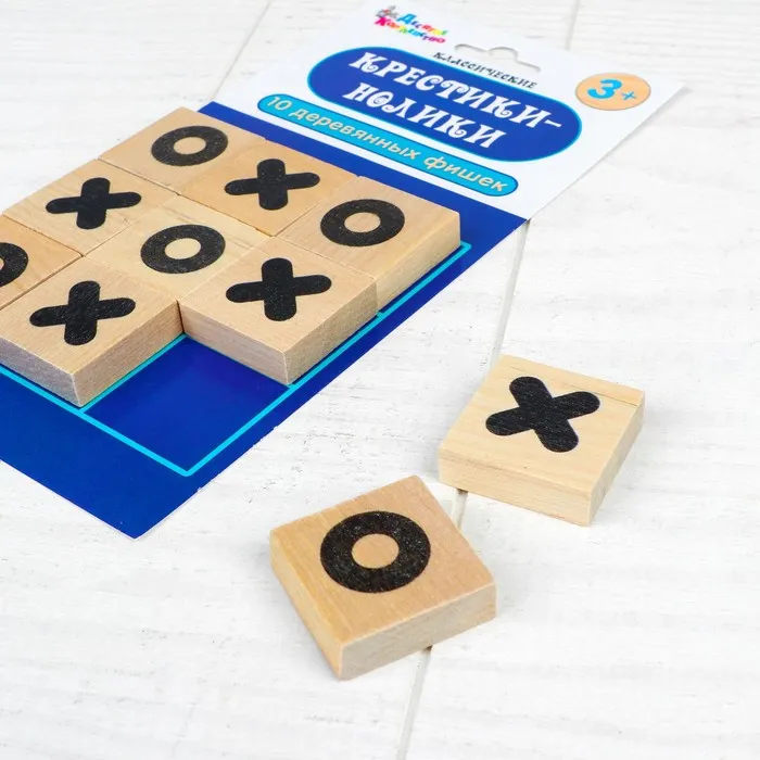 Игра "Крестики-нолики", деревянные фишки: 3 × 3 см — Характеристики