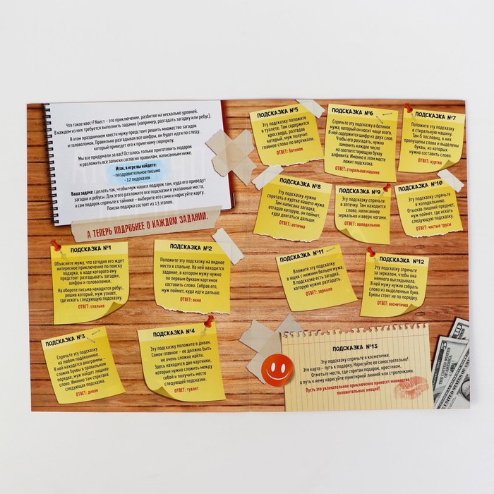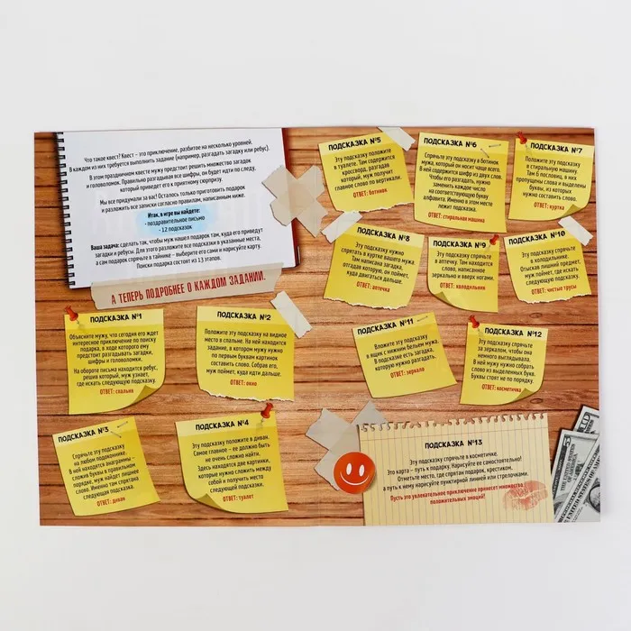 Всё, что нужно, — это правильно расположить все подсказки: под подушкой, в карманах одежды, под стулом и в других местах вашей квартиры. Следуйте правилам, и тогда у вас всё получится!