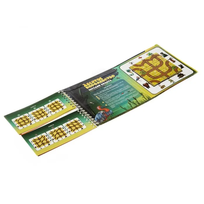 Игра представляет собой книжку на пружинке размером 15,5 х 14,5 см, внутри которой содержится игровое поле и буклет с заданиями. Игру такого формата удобно взять с собой в дорогу, путешествие или общественные места.