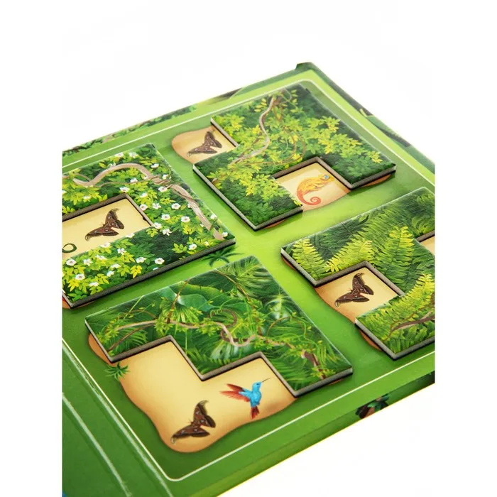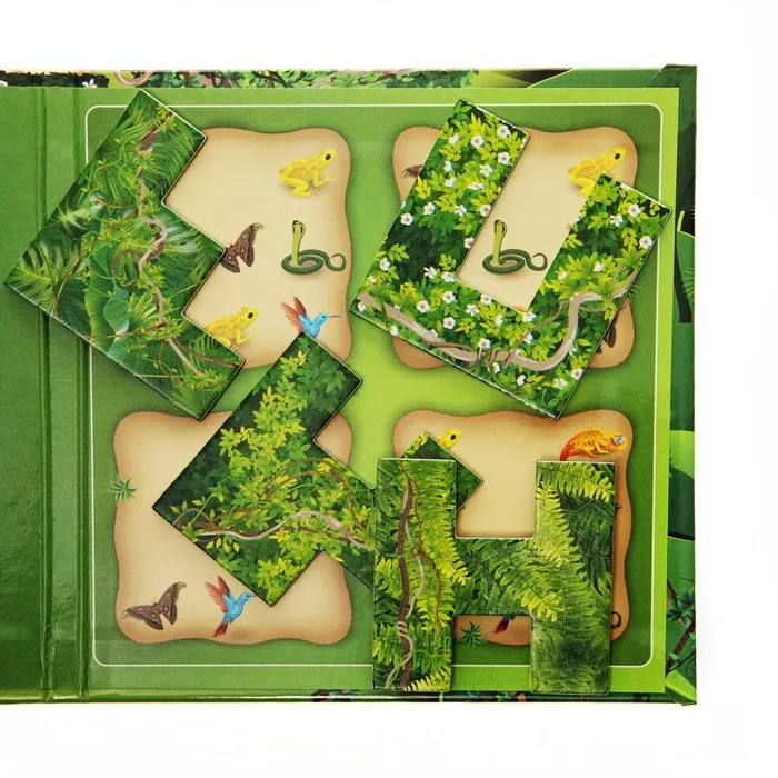 Игроку необходимо разместить магнитные фишки на игровом поле таким образом, чтобы открытыми остались только те тропические обитатели, которые указаны в задании. Остальные обитатели тропиков должны быть скрыты за зеленью. Вращайте и перемещайте детали по игровому полю, чтобы найти решение головоломки.