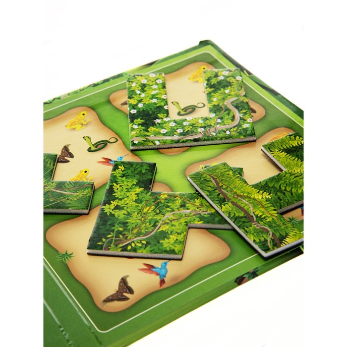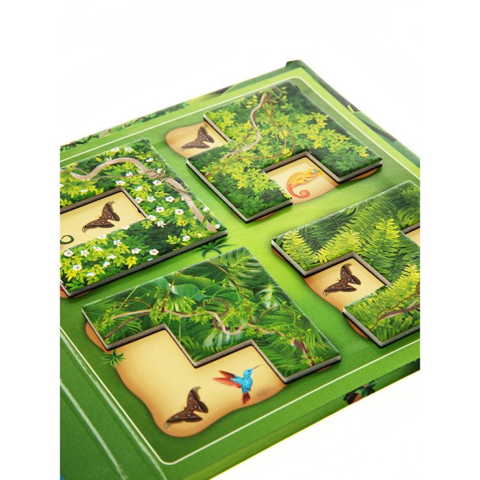 Магнитная головоломка «Тропики» отправит вас в загадочный мир джунглей и его обитателей. Помогите ярким колибри, невероятных размеров бабочкам, экзотическим хамелеонам, змеям и причудливым лягушкам спрятаться от палящего солнца и хищников в тени деревьев и трав.
