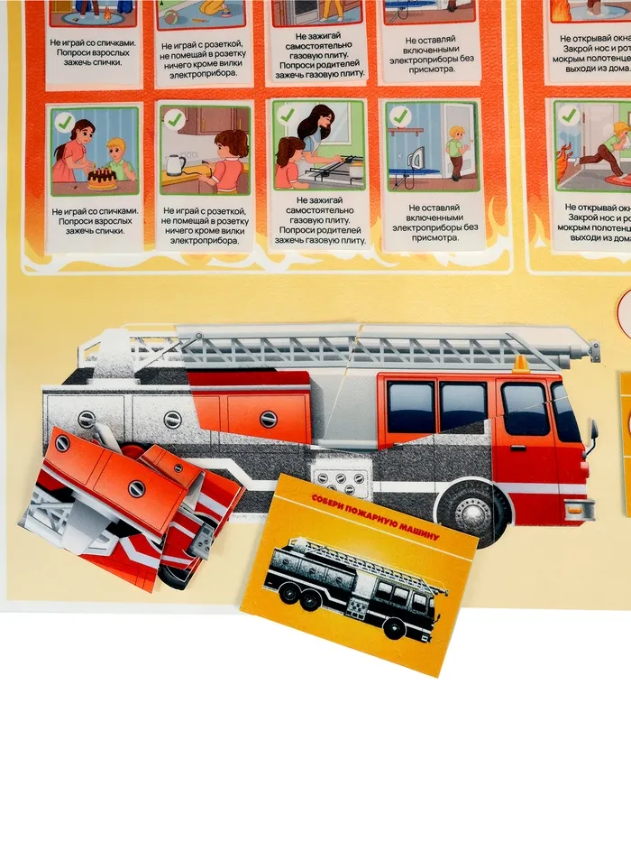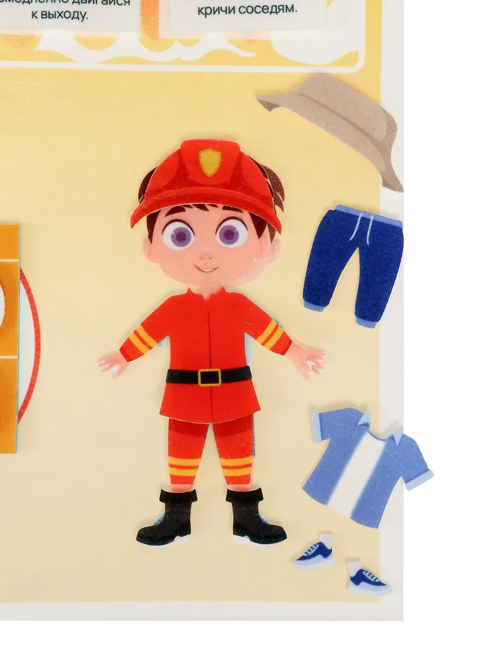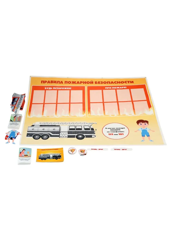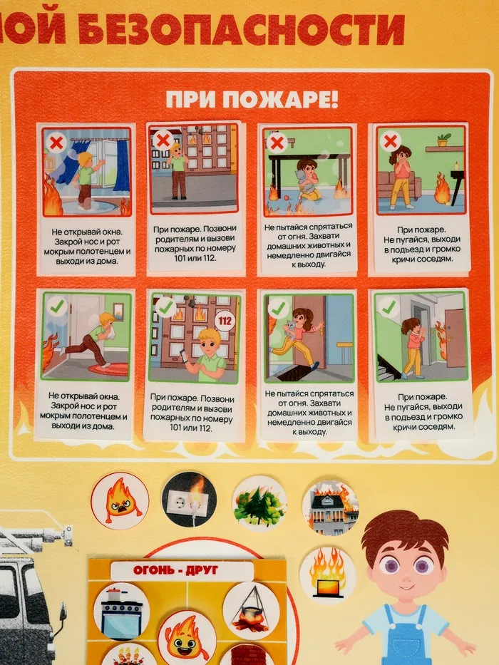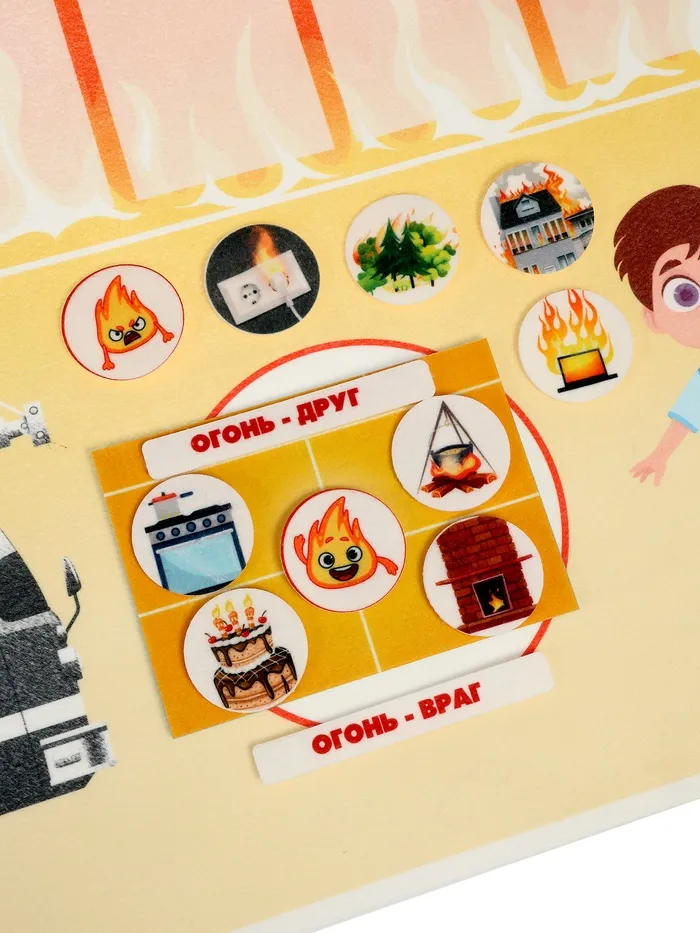 Интерактивное панно «Пожарная безопасность» — это увлекательный способ научить детей правилам поведения в опасных ситуациях. Набор из 55 деталей на липучках помогает малышам освоить важные знания через игры и практические задания. Подходит для детей от 3 лет, оно делает обучение ярким и запоминающимся.