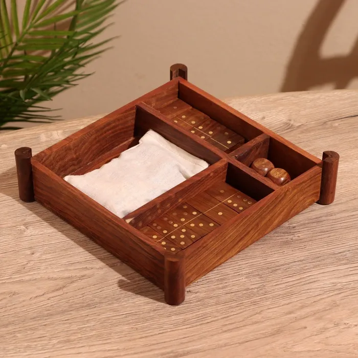 Игра настольная 3 в 1, шахматы, домино, кубики, доска 20×20 см, дерево шишам — Характеристики