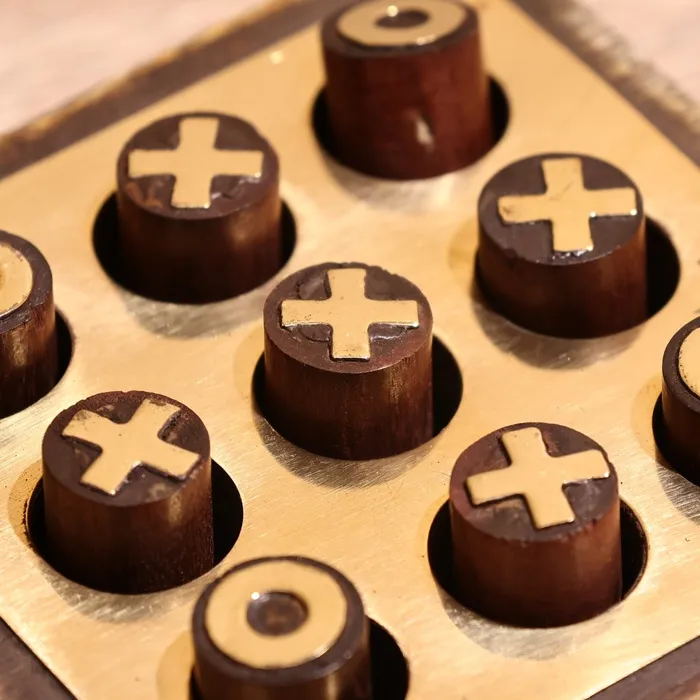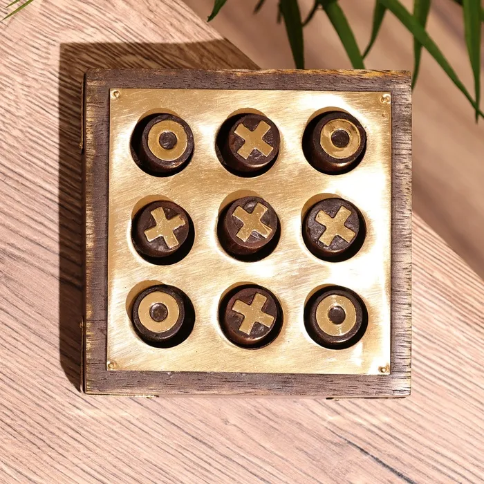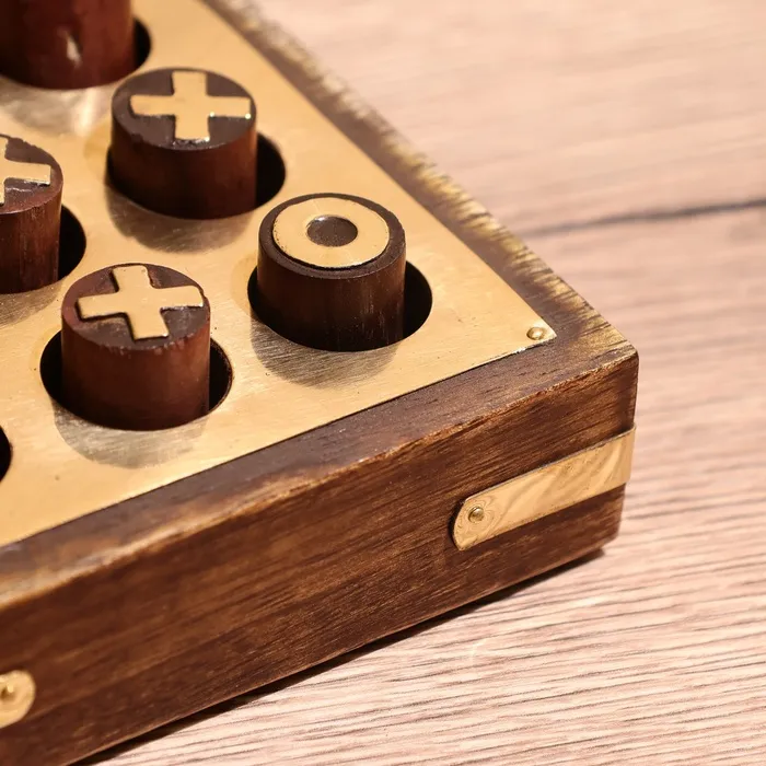 Игра настольная «Крестики-нолики», 10×10 см, дерево шишам, латунь
