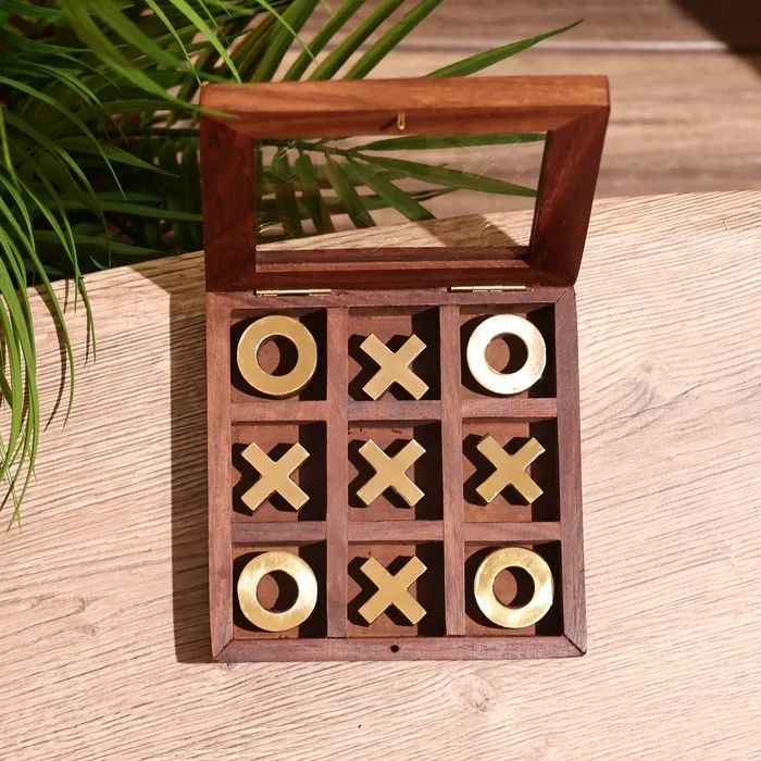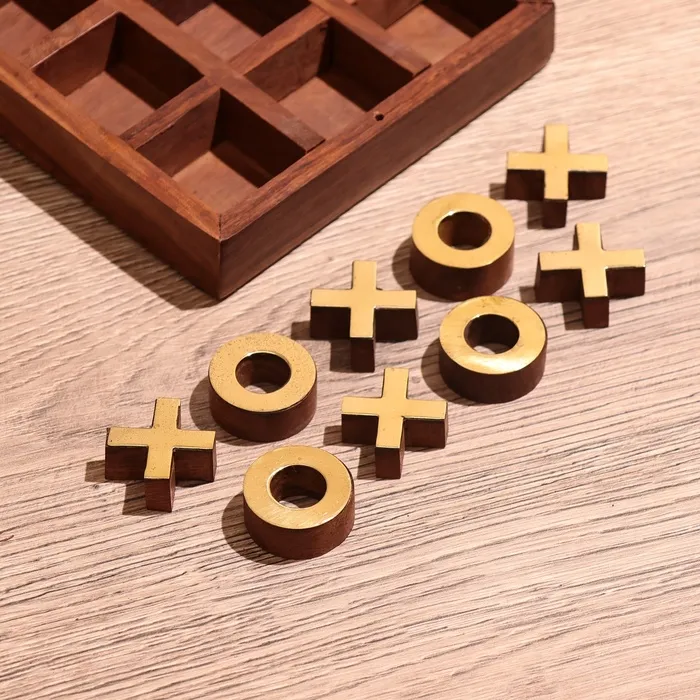 Игра настольная «Крестики-нолики», 13×13 см, манговое дерево, латунь