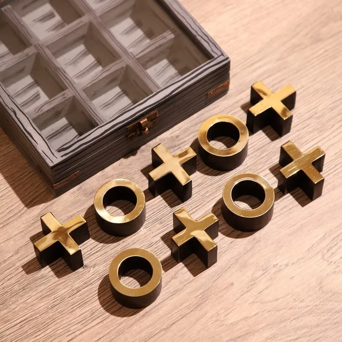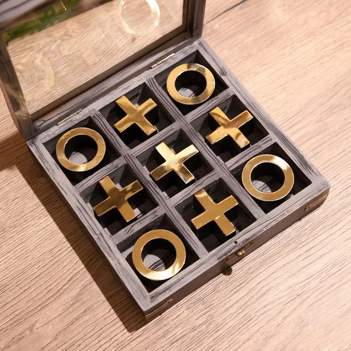 Игра настольная «Крестики-нолики», 18×18 см, манговое дерево, латунь