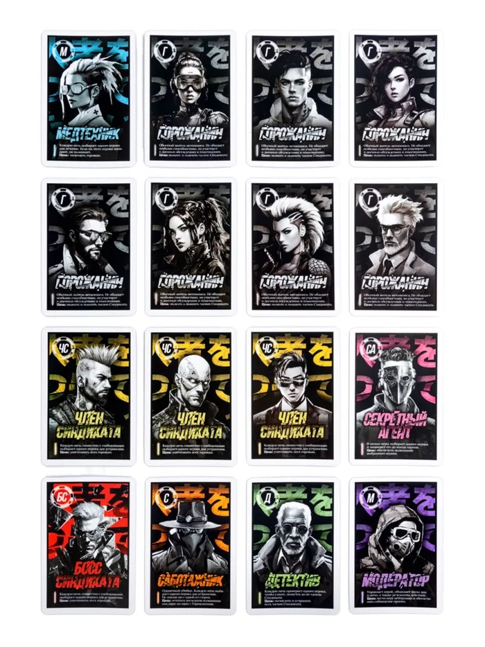 • День: все игроки просыпаются и обсуждают события прошедшей ночи, выдвигают обвинения и решают, кто может быть участником синдиката.