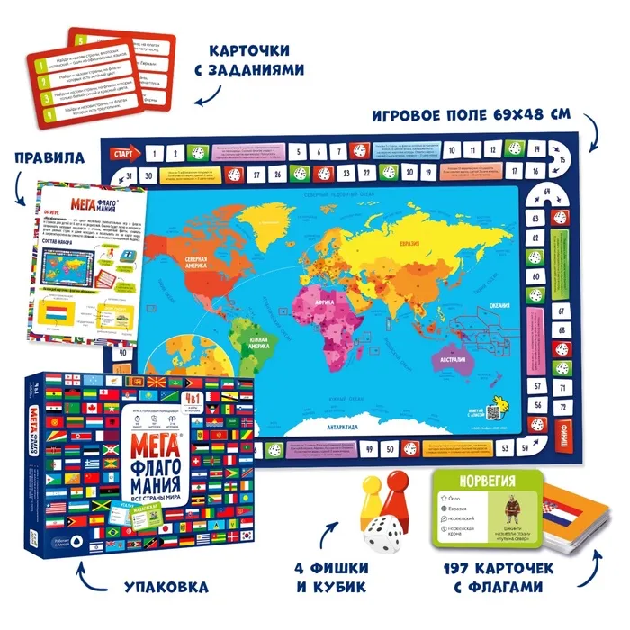 Игра настольная «Мегафлагомания», 200 карточек, МИКС — Характеристики