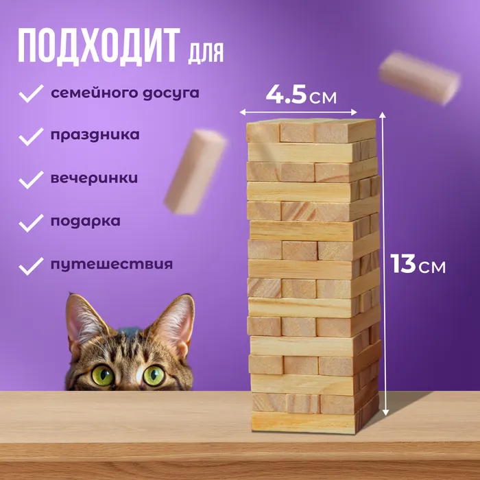 Игра настольная «Падающая башня» 13 × 4,5 × 4,5 см — Характеристики