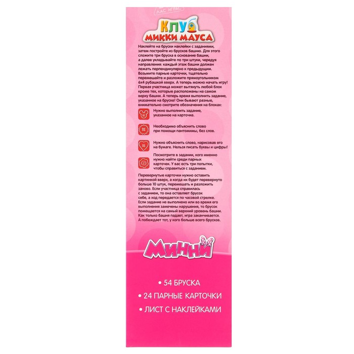 Игра Падающая башня «Для лучших подруг», Минни Маус, 54 бруска — Характеристики