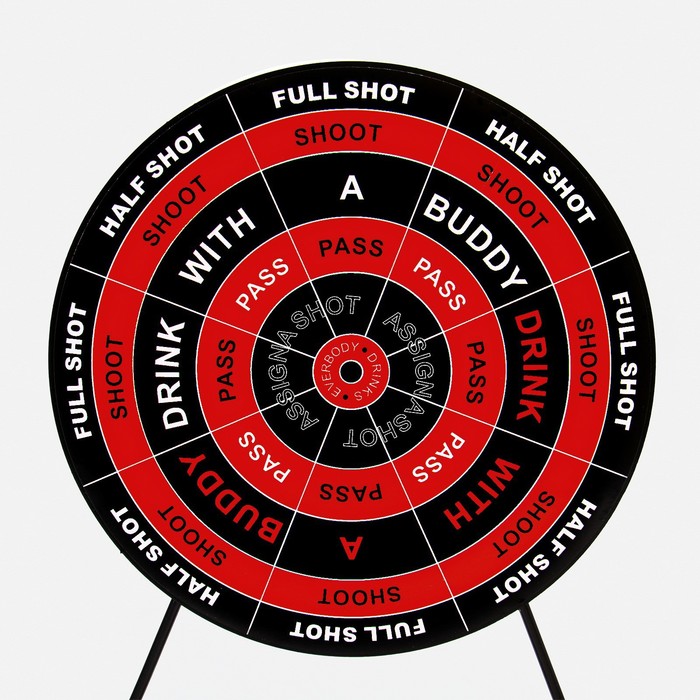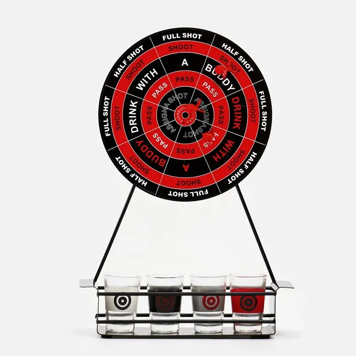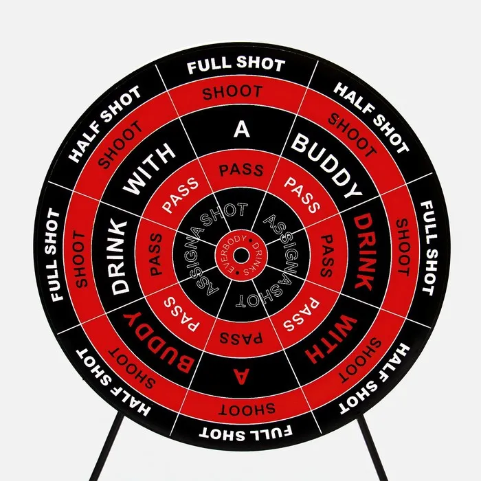 «Пьяный дартс» — модернизированная для вечеринок версия привычной игры, где попадание в яблочко означает «Пьют все». Прочие красно-черные поля также содержат руководство к действию. После броска игрок выполняет соответствующее задание, указанное на поле: передает ход или делает что-то еще.
