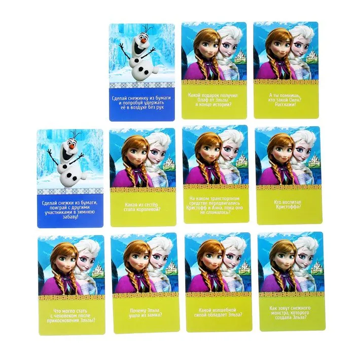 А у кого окажется меньше баллов, тот вытягивает карточки и выполняет весёлые задания от Анны и Эльзы.