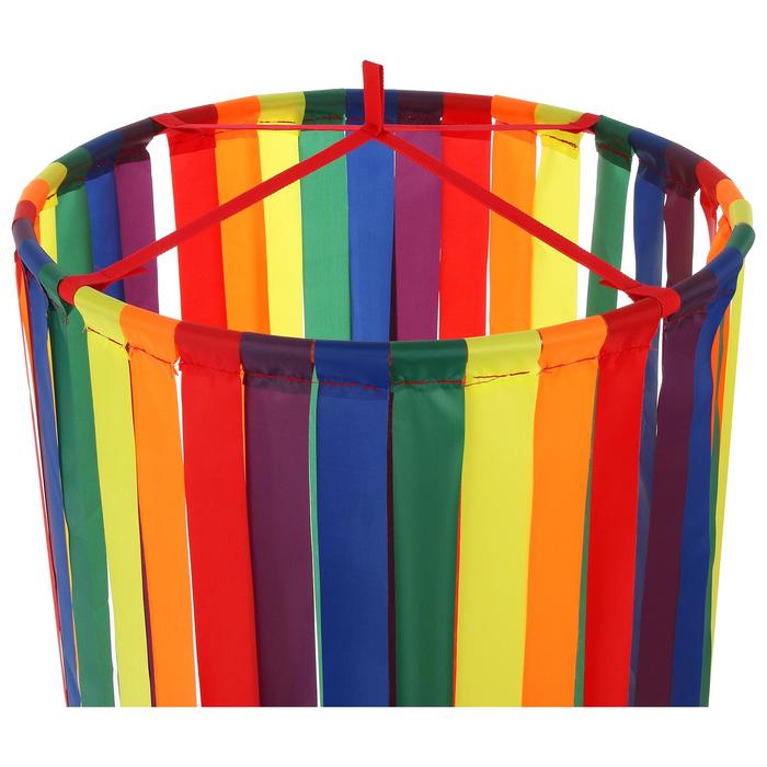 Инвентарь представляет собой круглый каркас на котором закреплены ленты разных цветов. Ленты расположены плотно друг к другу, таким образом создаётся подобие разноцветного шатра.