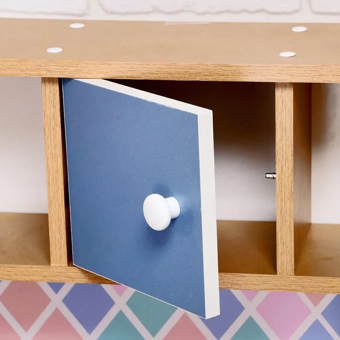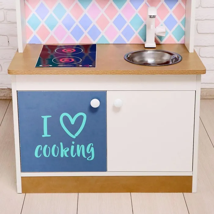 Игровая мебель «Детская кухня», цвет корпуса бело-бежевый, цвет фасада бело-голубой, фартук ромб — Характеристики