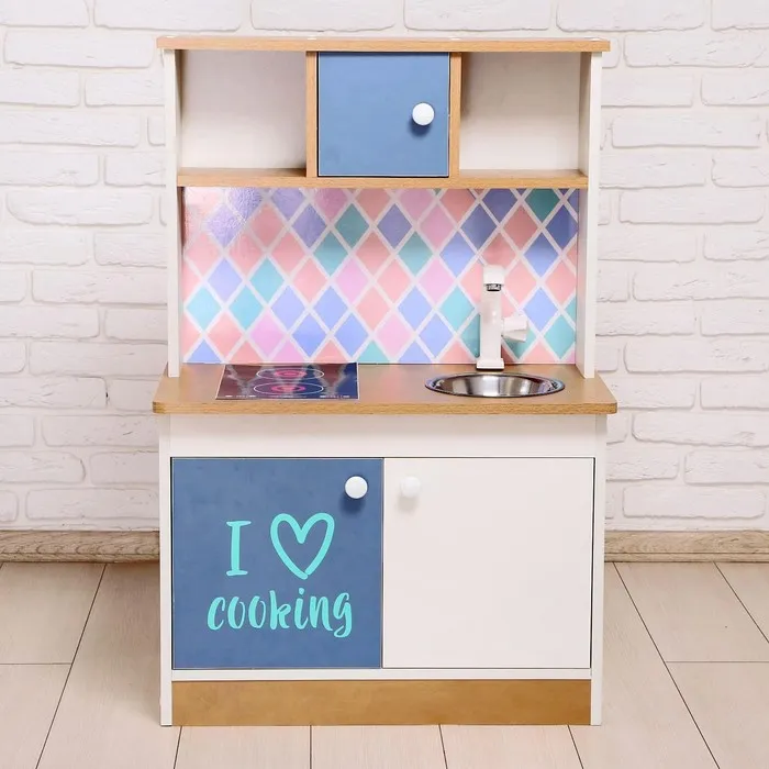Детская кухня — это маленькая копия взрослого кухонного гарнитура. То, что нужно для первых кулинарных экспериментов юного шеф-повара. Кухонный гарнитур подойдёт для детской комнаты и впишется в любой интерьер.