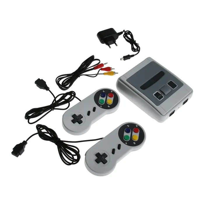 В комплект входят два проводных джойстика, которые обеспечивают комфортное управление в многопользовательских играх. Это отличное решение для игр с друзьями или семьёй. Серая окраска приставки выглядит стильно и современно, а её компактные размеры позволяют взять устройство с собой в любое место.