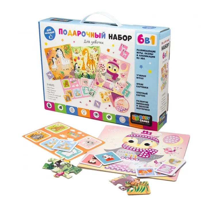 Игровое набор «Подарочный для девочек», 6в1 Лото, Домино, Мемо, Пазлы, Мозаика ЭВА, Baby Games — Характеристики