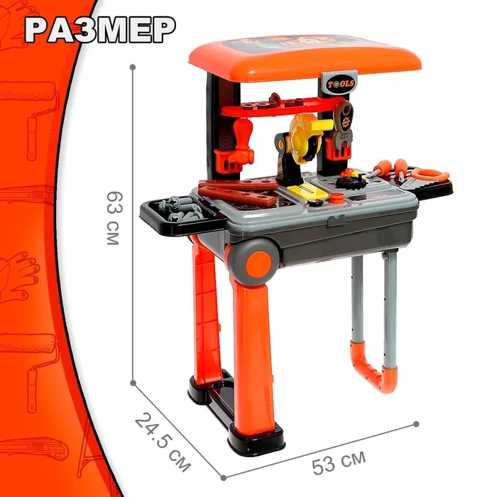 Игровой модуль детский «Мастерская» 3 в 1, верстак с инструментами, 56 элементов