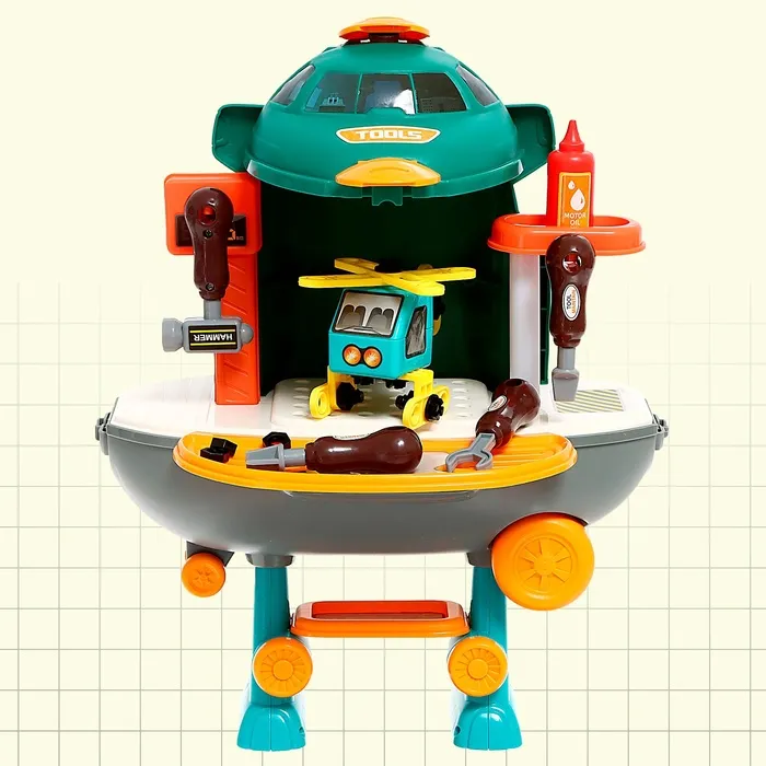 Игровой модуль в виде самолёта с верстаком и инструментами станет отличным подарком для будущего мастера. Комплект из 45 деталей поможет маленькому исследователю разобраться в устройстве мира техники.