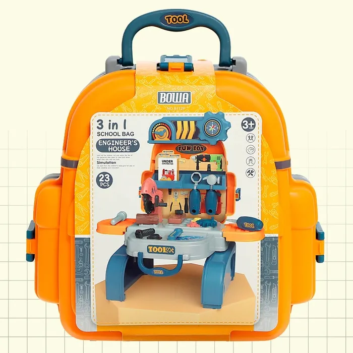 Игровой набор «Рюкзачок» станет отличным подарком для мальчиков, увлекающихся техникой и ремонтом. Этот верстак с инструментами поможет будущему мастеру освоить азы работы с отвёртками, пилами и ключами в игровой форме.