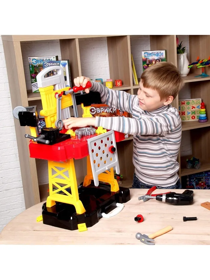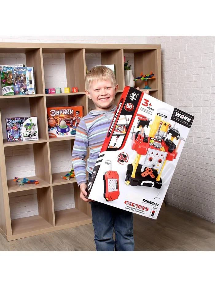 «Мастерская» — это игровой модуль, который с лёгкостью помещается в чемоданчике. Раскройте его, и у маленького умельца появится собственное рабочее место, где он будет чинить сломавшиеся игрушки и изобретать новые.