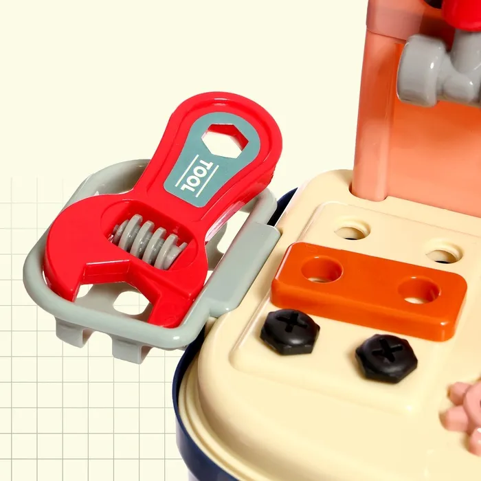 С этим набором ребёнок сможет развивать мелкую моторику, внимательность и логическое мышление. Игра превращается в познавательное занятие: каждый инструмент помогает понять, как работают настоящие мастера. Чемодан добавляет организованности, а разнообразие элементов делает процесс игры интересным и долгим.