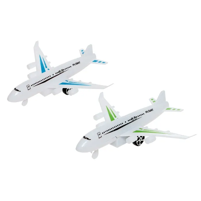 - Два самолёта в наборе: каждый самолёт оснащён инерционным механизмом: просто оттяните его назад, и он помчится вперёд самостоятельно! Никаких батареек — играйте где угодно: дома, на улице или даже в песочнице. Самолёты движутся плавно и быстро, словно настоящие воздушные суда на взлётной полосе.