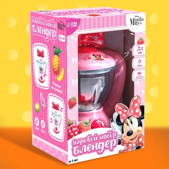 Погрузись в магию кулинарии вместе с любимыми героями! Игрушечный блендер «Минни» — это яркая, интерактивная кухонная игрушка для девочек от 3 лет. Весёлые звуки, мерцающий свет и реалистичные движения помогут окунуться в мир маленькой хозяйки и превратить любую игру в настоящее приключение.