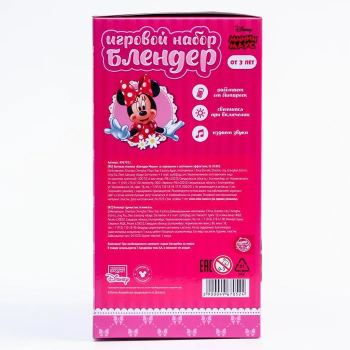 Игровой набор «Блендер», Минни Маус, звук, свет — Характеристики