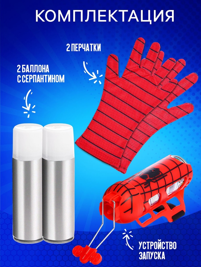 Игровой набор «Человек-паук» с перчатками, 1 устройство запуска, стреляет паутиной — Характеристики
