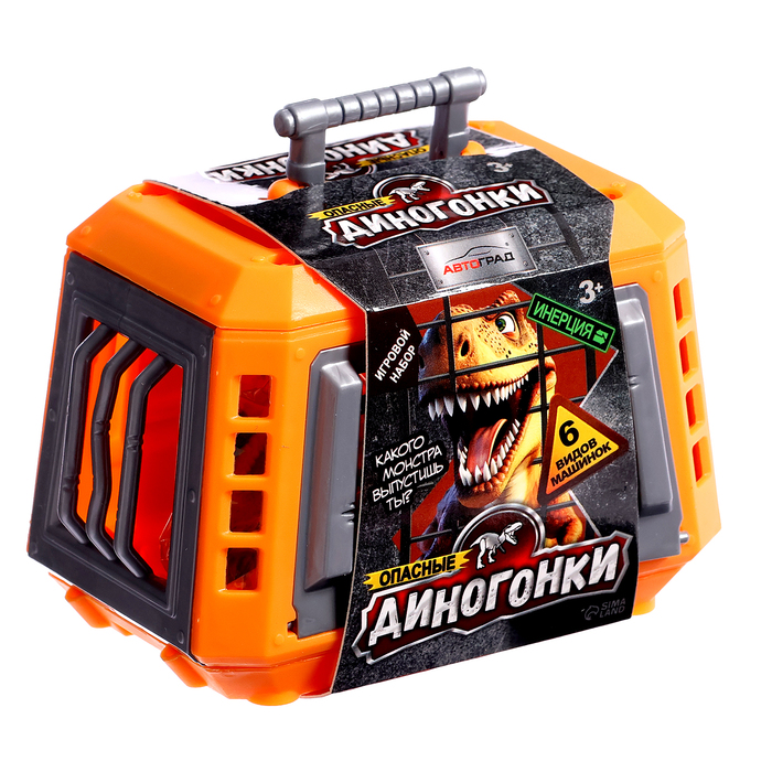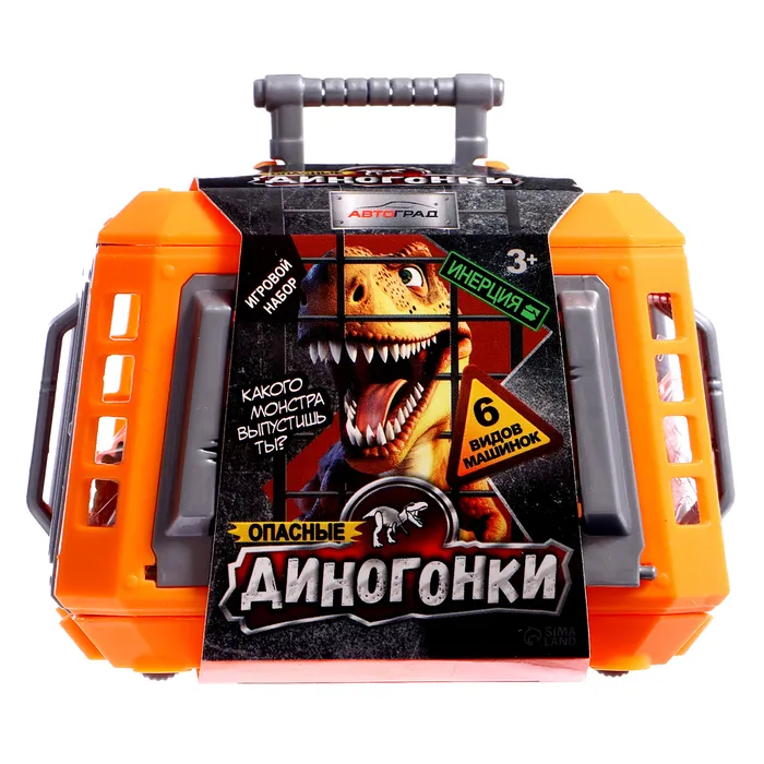 Опасные динозавры сбежали – кто первым придет к финишу? В этом инерционном наборе «Диногонки» спрятаны невероятные машинки с головами доисторических хищников! Открой клетку, отпусти динозавра и смотри, как он мчится вперёд!