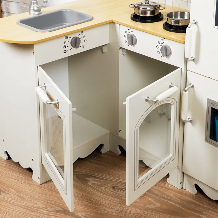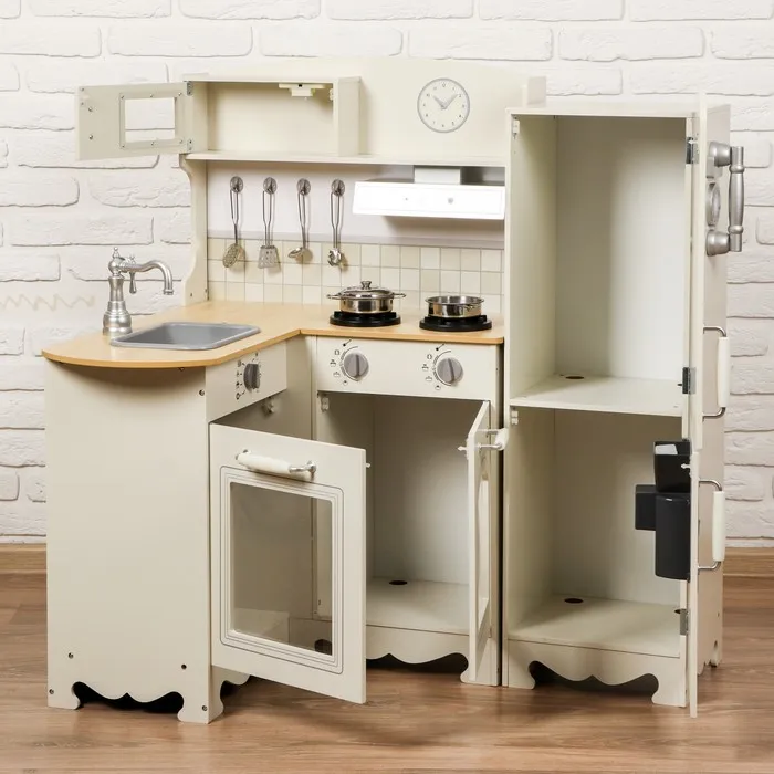 Игровой набор «Кухня угловая» — это игровой комплекс для детей от 3 лет, включающий все необходимое для увлекательных ролевых игр. Кухня изготовлена из дерева, что обеспечивает её долговечность и безопасность. Гарнитур дополнен холодильником. Вся конструкция весит ~24 кг, что делает её устойчивой и надёжной для игры.