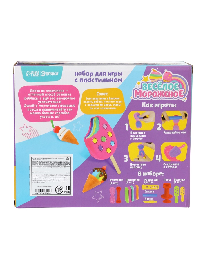 Игровой набор для творчества подарит ребёнку возможность создать красочные десерты из пластилина. В комплекте есть всё необходимое для веселой игры: пластилин пяти цветов и аксессуары. Маленький кондитер сможет «приготовить» мороженое, украшать его, комбинировать оттенки и придумывать уникальные рецепты!