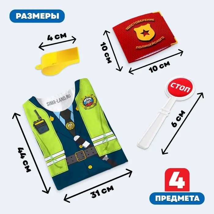 Игровой набор для мальчиков «ДПС», жилет, жезл, свисток, удостоверение — Характеристики