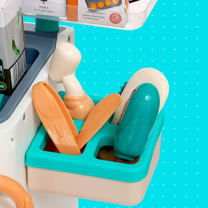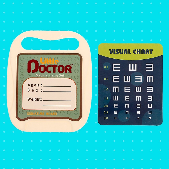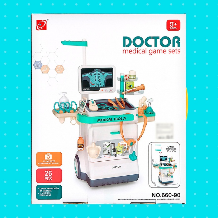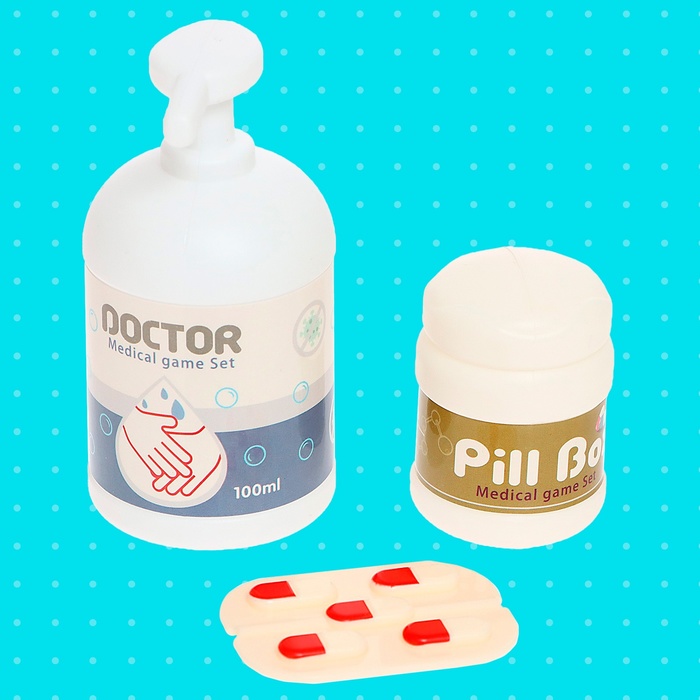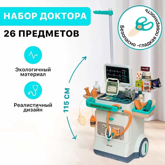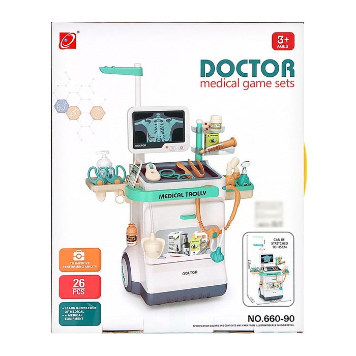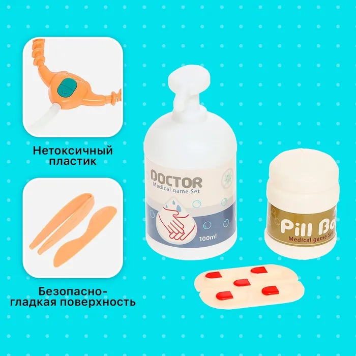 • 26 предметов, включая игрушечный стетоскоп, шприц, термометр и другие инструменты.