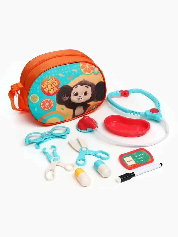 Игровой набор доктора в удобной сумочке с Чебурашкой — увлекательная игрушка для детей от 3 лет, которая поможет познакомиться с миром медицины. В комплекте всё, что нужно для увлекательных сюжетных игр: очки, стетоскоп, бейдж врача и инструменты для «лечения» пациентов.