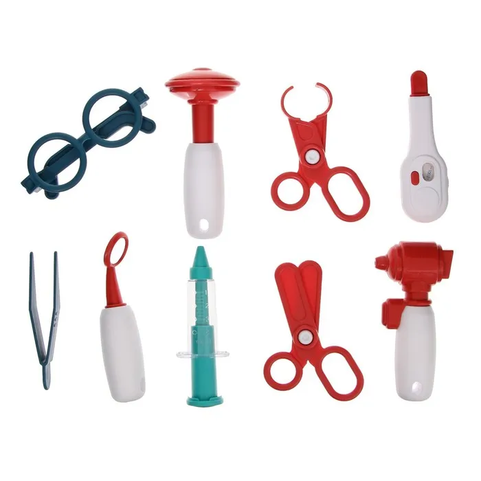 - В комплекте 10 аксессуаров, которые помогут воссоздать атмосферу приёма у врача. Ребёнок сможет играть роль терапевта, лечить игрушечных пациентов и осваивать базовые понятия из мира медицины.