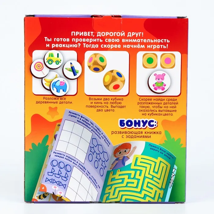 • Скорее найдите среди разложенных деталей такую, чтобы на ней оказались выпавшие на кубиках цвета.