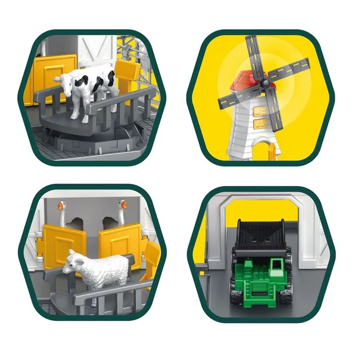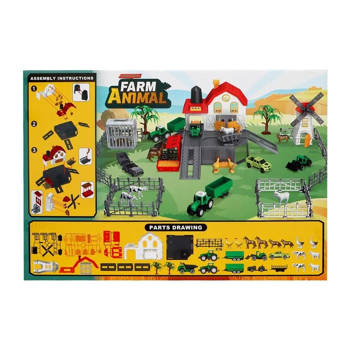 Игровой набор «Ферма» — это идеальный мир для юных фермеров. В комплекте вы найдёте парковку для машинок, амбар, вольеры, животных и прочие аксессуары.