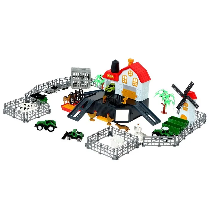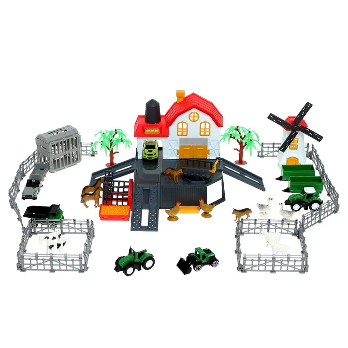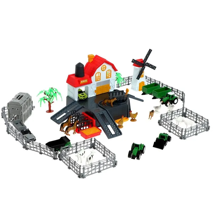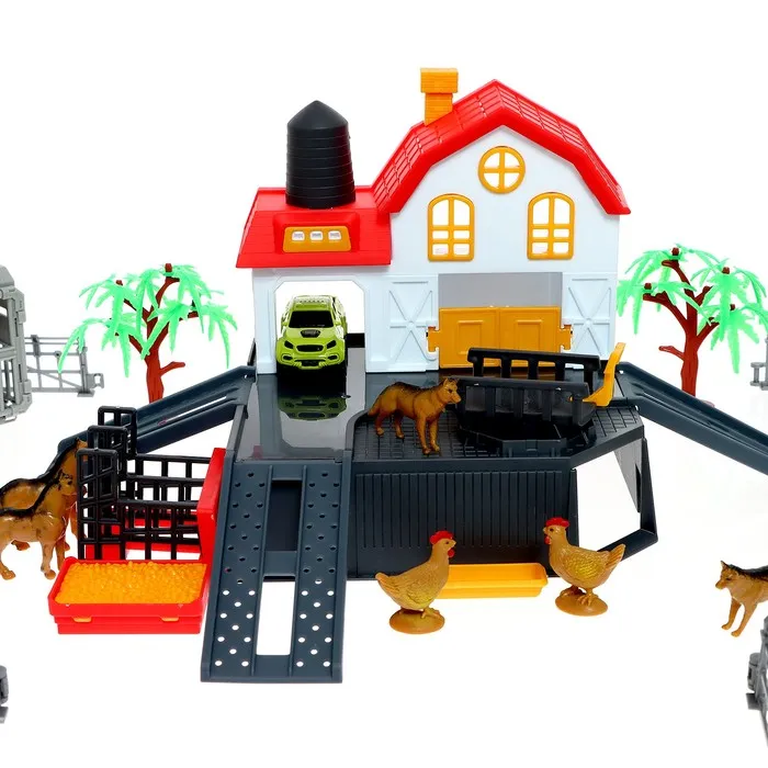 Игровой набор «Ферма», парковка для машин, амбар, вольеры, транспорт, животные — Характеристики