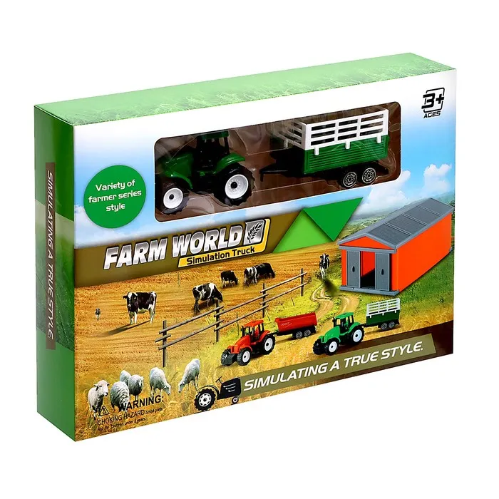 Игровой набор «Ферма» познакомит ребёнка с сельским хозяйством. Набор включает в себя трактор с прицепом, сарай и игровые аксессуары.