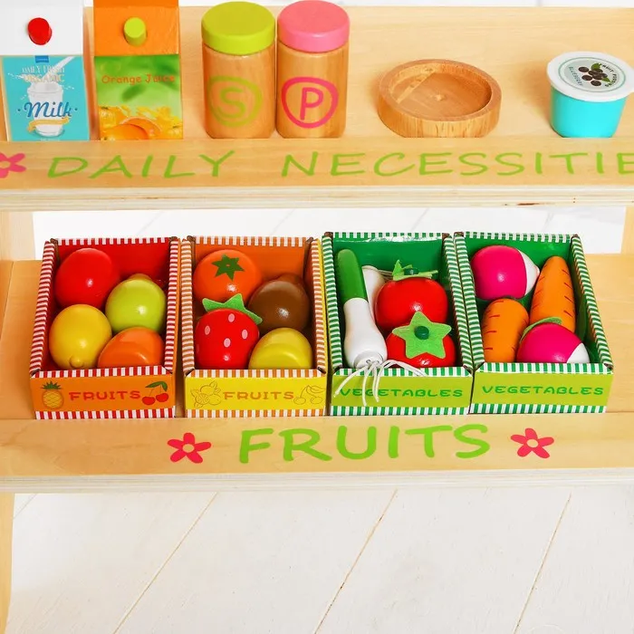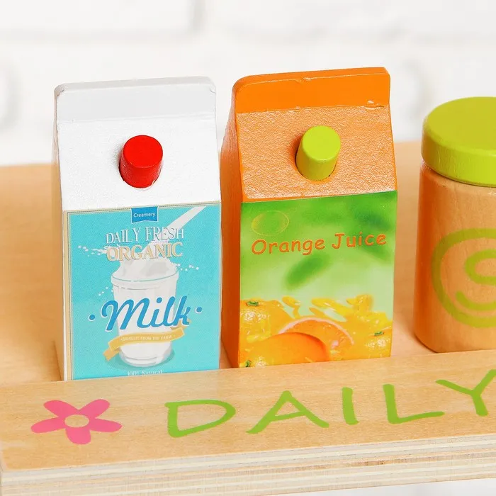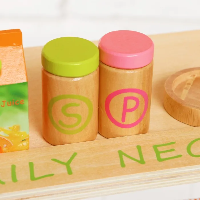 Игровой набор «Играем в магазин» — это идеальное решение для развития воображения и социальных навыков у детей от 3 лет. В комплекте есть всё необходимое для игры в магазин: касса, весы, деревянные упаковки соков, банки с джемом и соусом, а также ящики с фруктами и овощами.