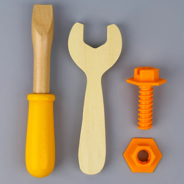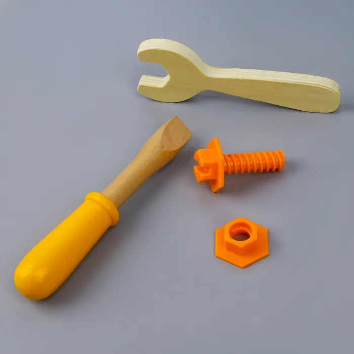Игра с инструментами развивает мелкую моторику, логическое мышление и координацию движений. Ребёнок учится взаимодействовать с предметами, решать простые задачи и проявлять фантазию, создавая свои первые «проекты».