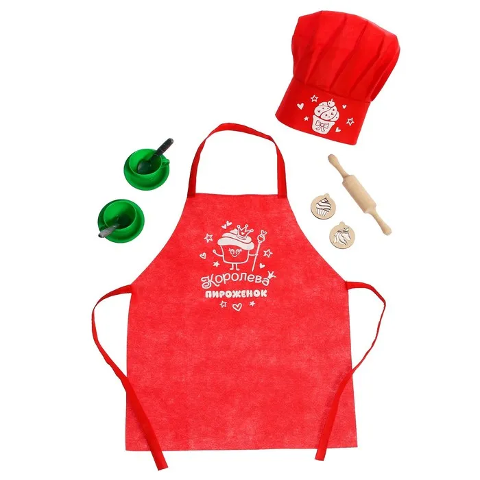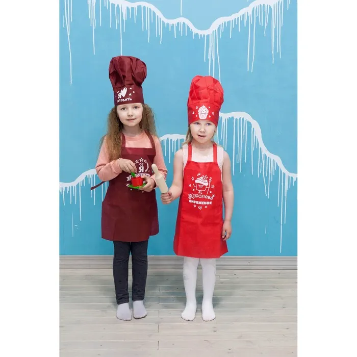 Фартук и поварской колпак подойдут для детей от 3 до 7 лет.