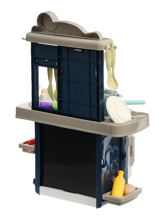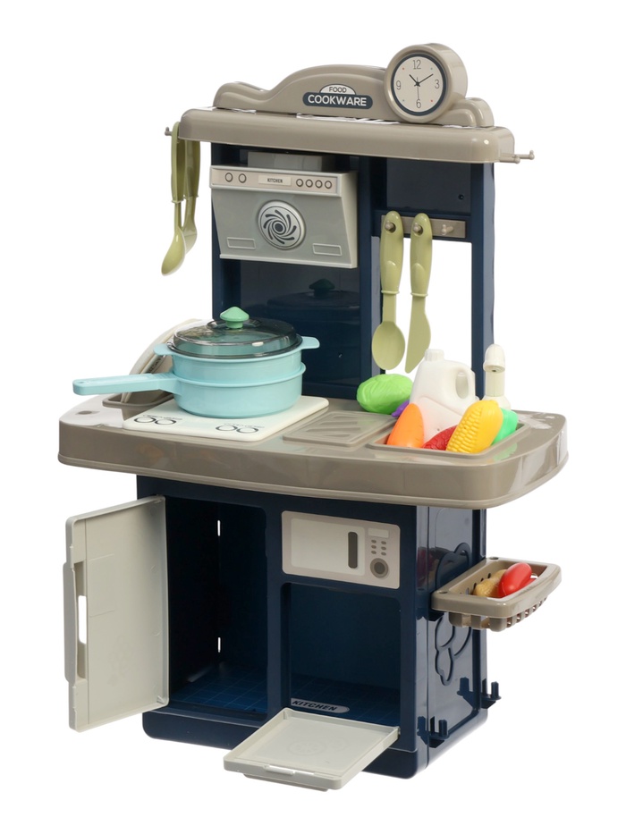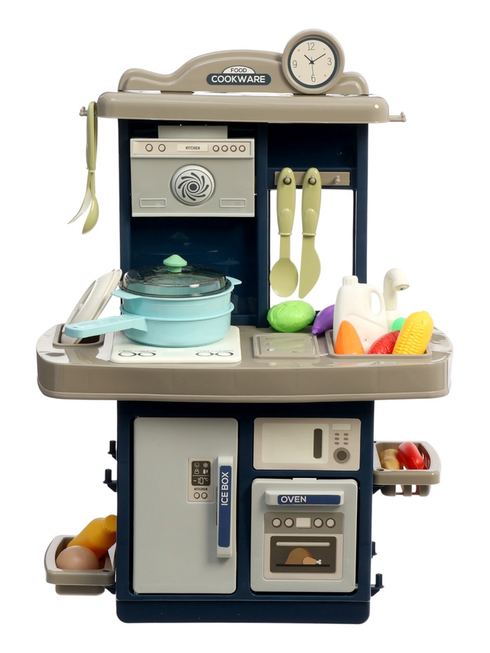 Игровой набор «Кухня» — это полноценная мини-кухня, в которой ребёнок может почувствовать себя настоящим шеф-поваром. Рабочая поверхность, варочная панель со световыми и звуковыми эффектами, духовка, холодильник и мойка создают реалистичную атмосферу и помогают полностью погрузиться в процесс игры. Все аксессуары удобно размещаются на полках, крючках и в шкафчиках, а количество предметов позволяет придумывать десятки сюжетов — от приготовления завтрака до большого праздничного ужина.