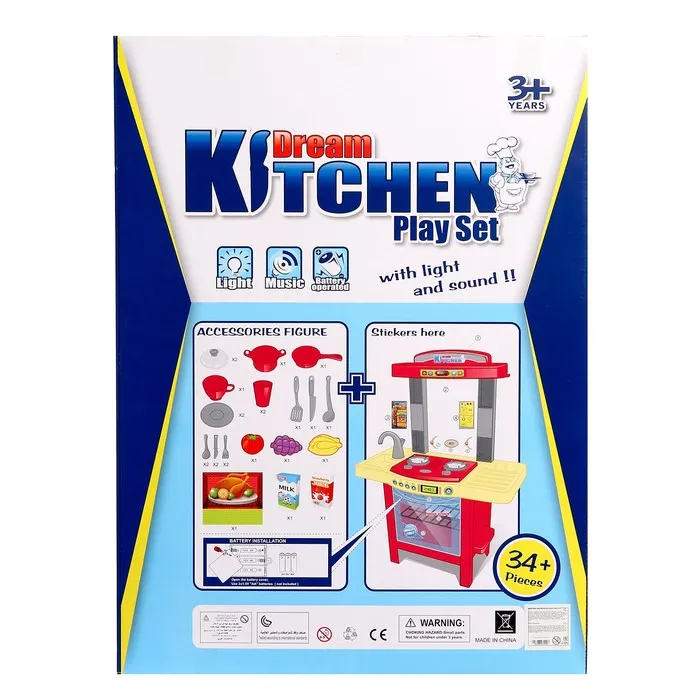 Игровой набор «Кухня мечты» с посудой и продуктами, свет, звук, работает от батареек — Характеристики