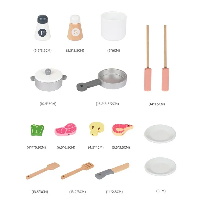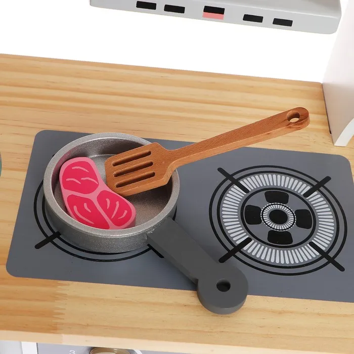 Все предметы сделаны из экологичного материала — дерева — и покрыты безопасной краской. В гарнитур встроена мойка для посуды. Духовку можно открывать и ставить внутрь пироги или другие блюда.