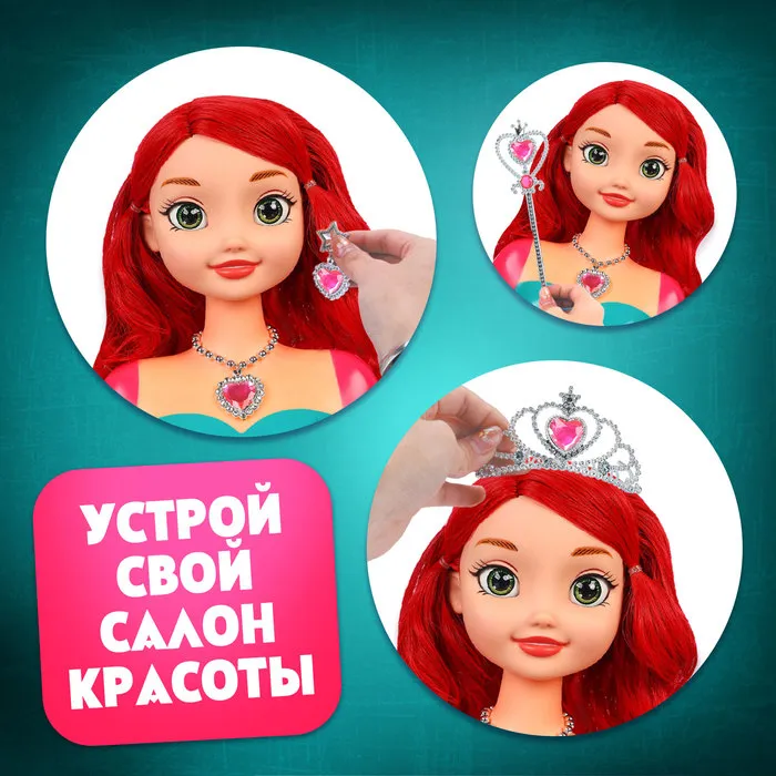Игровой набор идеально подойдёт для подарка маленькой принцессе. Он не только развивает мелкую моторику ребёнка, но и вырабатывает фантазию и мышление. Куклу будет интересно наряжать в аксессуары, а также расчёсывать и показывать своим подружкам!