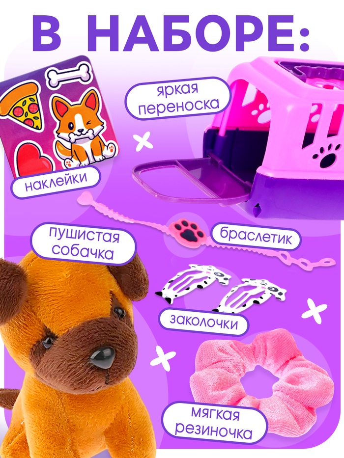 Игровой набор «Любимый питомец: Собачка», в переноске, с аксессуарами — Характеристики